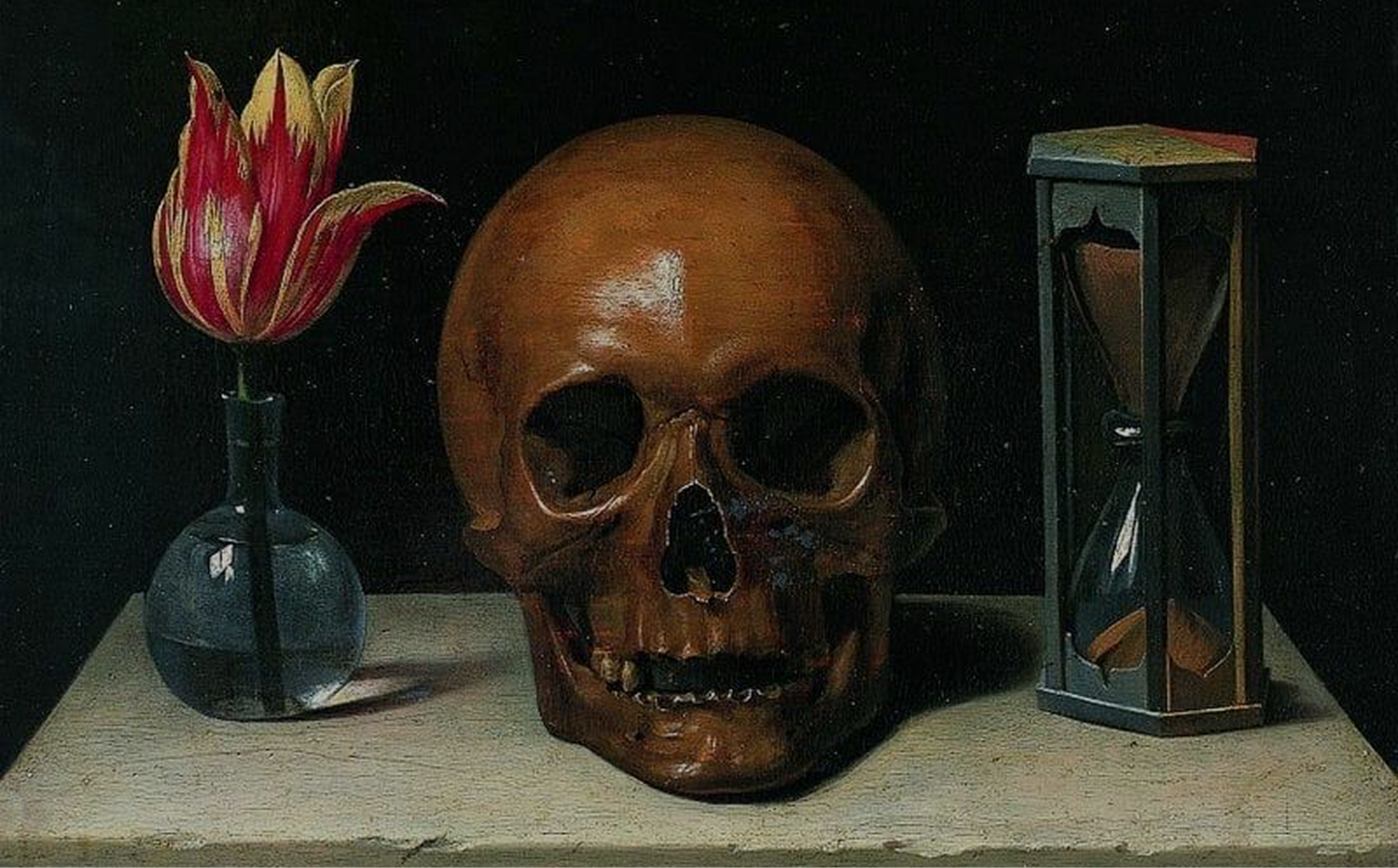 В барочной живописи то же самое. На картинах — череп (напоминание о смерти), увядающие цветы (быстротечность жизни), часы (время уходит).