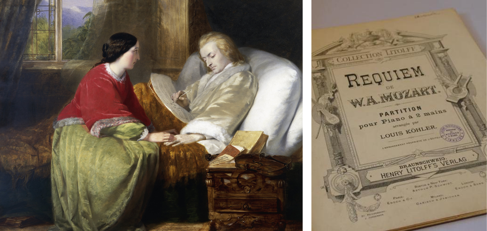 Существует история, что накануне смерти друзья пропели для Моцарта «Реквием», и когда дошли до первых тактов Lacrimosa, композитор заплакал и сказал, что не закончит эту часть. Сюжет закрепился во множестве биографий и стал особенно популярен среди художников: почти на всех картинах, изображающих последние часы Моцарта, мы видим исполнение «Реквиема» у постели больного.
